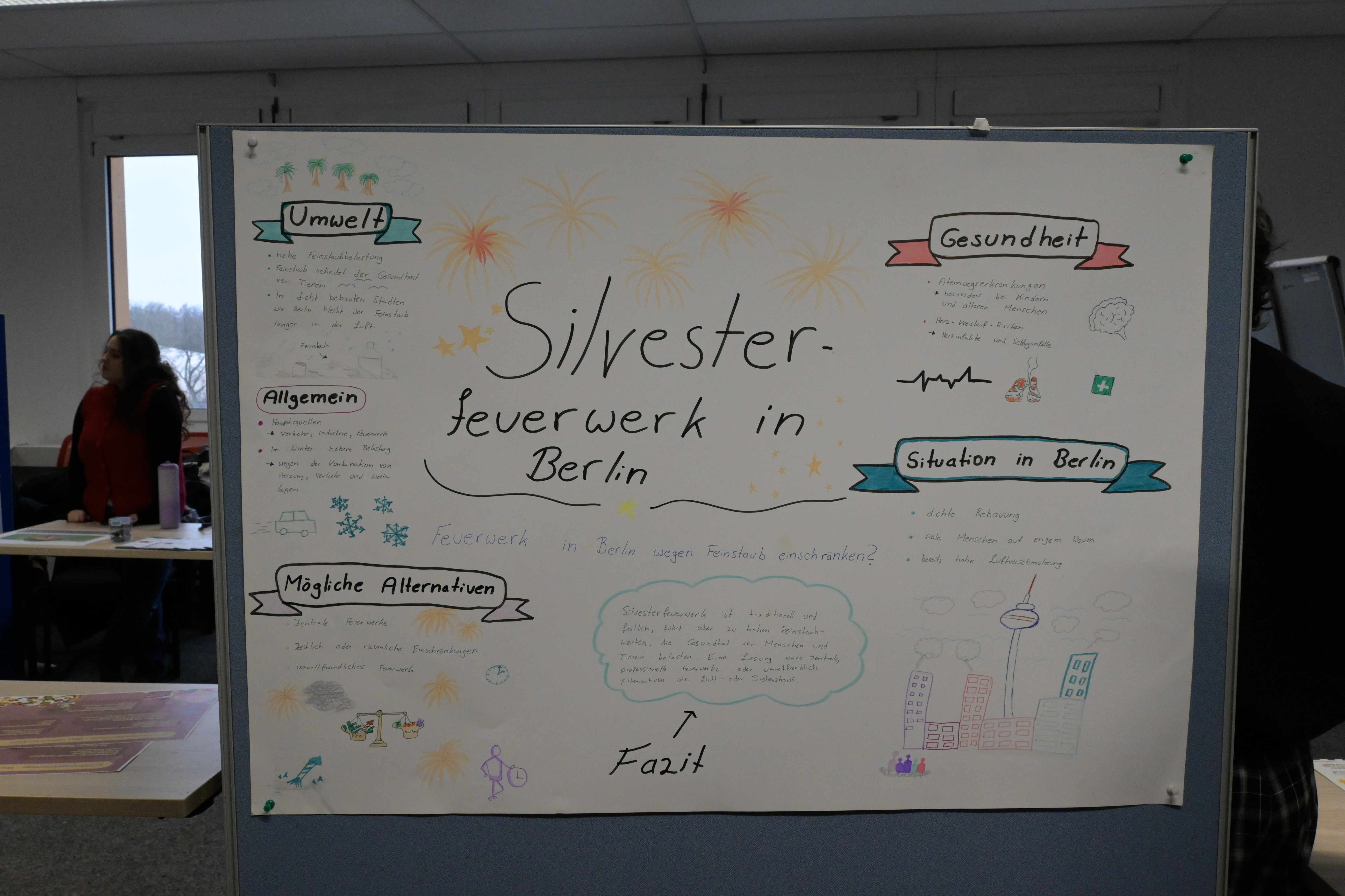 Vor den Winterferien war es wieder so weit: im Rahmen unserer Projektwoche Pädagogische Werkstatt befassten sich die Schüler*innen des META-flex-12er Jahrgangs mit dem Thema "Energie - (k) ein Thema für mich?". Im Mittelpunkt standen dabei Fragen der Energiewende und der Energienutzung. Neben klassischen Themen, wie "Folgen des Energieverbrauchs" oder der "Nutzung alternativer Energie-Formen", suchten sie unsere Schüler*innen aber auch aktuelle Themen aus: "Blackout (in Berlin)", "Energy-Drinks" oder "Energie-Mythen bei sportlicher Bewegung". Im Mittelpunkt stand jedoch der kreative Umgang mit dem Thema: Flyer wurden erstellt, Videos und Podcasts gedreht, Bastelarbeiten und Plakate gestaltet. Alle Gruppen konnten ihre Ergebnisse mit Stolz beim abschließenden gallery walk der Schulgemeinschaft zeigen. Diese Projekttage sind immer ein highlight im Schuljahr und mittlerweile fester Bestandteil unseres Bildungsgangs "META-flex".